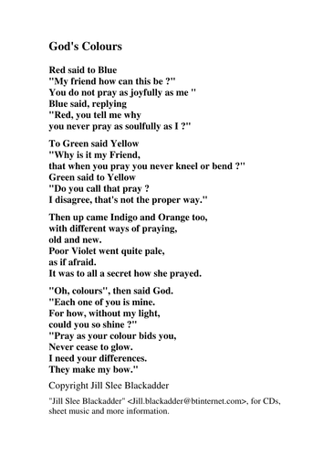 Lyrics For God S Colours Teaching Resources