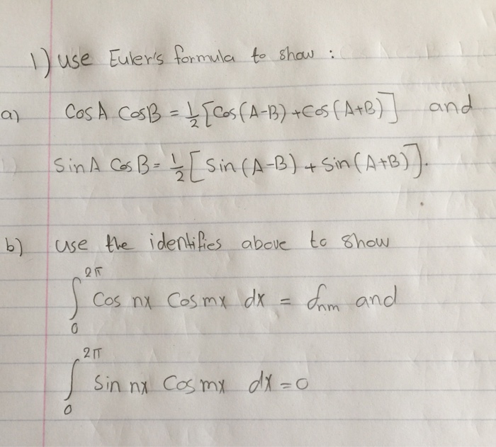 Cos a b cos a cos b sin a sin b. Questions are typically answered within 1 hour response times may vary by subject and question. The big angle a b consists of two smaller ones a and b the construction 1 shows that the opposite side is made of two parts. Let f s v v 2 4y be given.