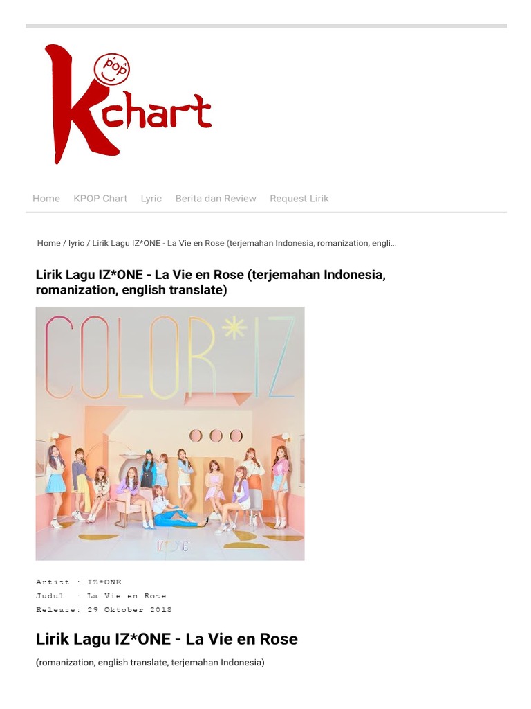 Lirik Lagu Iz One La Vie En Rose Terjemahan Indonesia Romanization English Translate Bacakpop Pdf Leisure